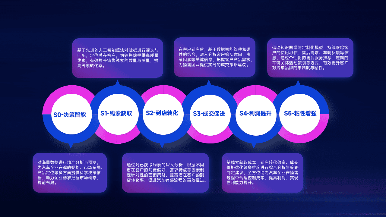 通过拓宽潜在客户来源、、优化线索分配并提高到店转化率,,以增强销售效率。。。。同时,,利用线索数据不断优化分析模型,,,有效提升转化率,,扩大营销影响力。。。